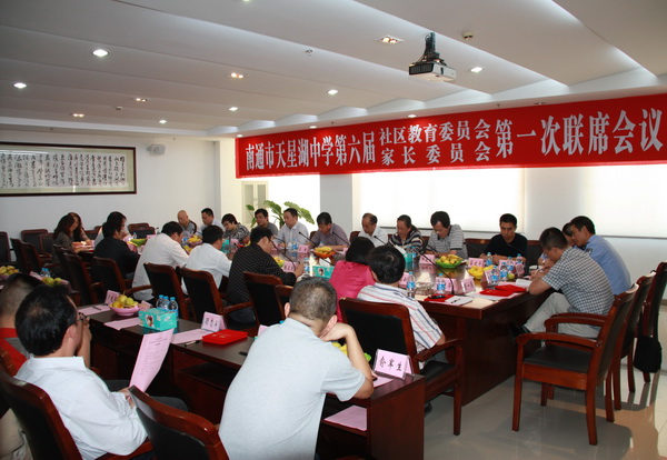 为了切实加强学校与家庭的联系,优化教育环境,力争学校教育与家庭教育一体化,促进青少年学生的素质全面和谐发展,同时,本着进一步强化学校和社会的联系,拓展学生社会实践空间,丰富德育活动形式,改善办学条件,发动、争取社会力量关心支持教育,我校于2012年10月10日召开了天星湖中学六届一次家长委员会、社区教育委员会联席会议。 联席会议上,首先由天星湖中学党总支书记、校长徐新民同志向出席六届一次家长委员会、社区教育委员会联席会议的委员们介绍了学校近年来建设发展的基本情况和教育教学取得的丰硕成果,并希望委员们对天星湖中学今后的工作提出宝贵的意见和建议。 之后,天星湖中学社区教育委员会主任、开发区农工局局长王超,天星湖中学家长委员会主任、南通市统计局局长助理周金涛,以及其他委员纷纷发言。他们对天星湖中学近年来取得的业绩表示祝贺,对学校领导和老师团结奋进、献身教育的精神表示赞赏,对天星湖中学未来的发展表示坚决支持。 联席会议结束后,委员们还饶有兴趣地参观了校园,并在学校景行楼前合影留念。
