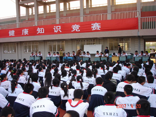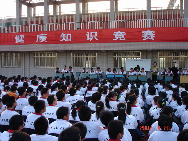 4月19日、20日、23日、24日,在操场分别举行了健康知识竞赛。这一比赛对普及健康知识、倡导健康生活起到很好的作用。 |