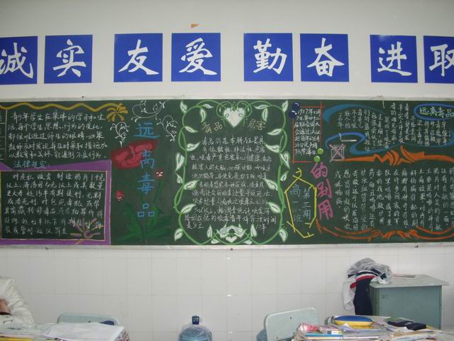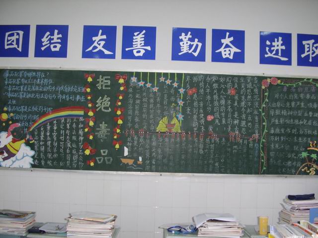 班级“禁毒”黑板报评比揭晓 为配合“禁毒”教育,我校政教处、团委、学生会联合举办了“禁毒”为主题的班级黑板报评比。一块块内容丰富、形式优美、设计新颖的黑板报广受同学们的好评与青睐,受到了寓教于乐的良好效果。现将评比结果公布如下: 一等奖:高一1班 高一2班 二等奖:高二6班 高三1班 高一6班 初一2班 三等奖:高二5班 高二2班 高二4班 高一5班 高三8班 初三3班