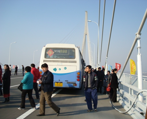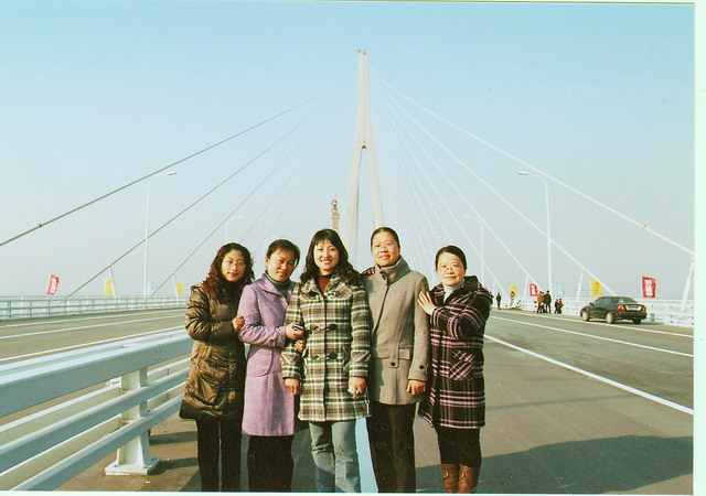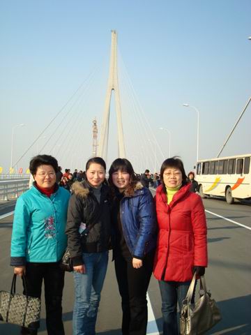 三月,春风拂面,春意盎然。在苏通长江大桥即将通车之际,我校经与“大桥指挥部”联系,组织全校200余名教职工分乘5辆大客车,在向南行驶完了8.1公里的跨江大桥后,又折回大桥中心,下车与大桥零距离接触。 江面宽阔,百舸争流;大桥雄伟,飞架南北。教师们在桥面一边慢慢地走着,一边眺望着耸入云天的索塔和琴弦般的斜拉索,抚摸着壮硕的钢缆和光滑的护栏,无不感慨万千,叹为观止。于是,咔、咔的快门声密集响起,大家在大桥上纷纷留下了靓丽的身影和永远的回忆。