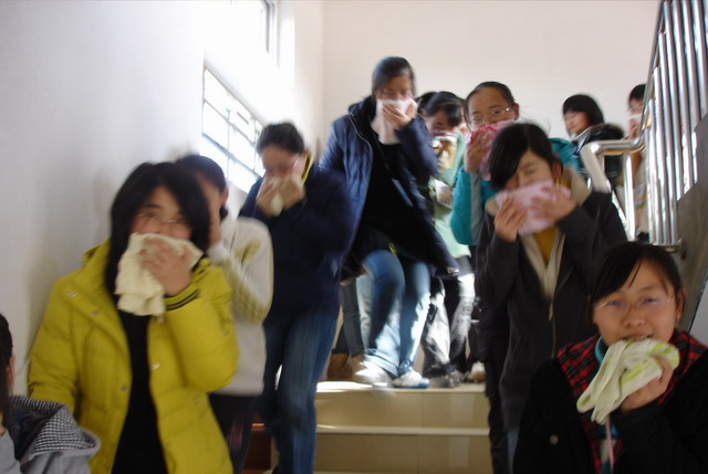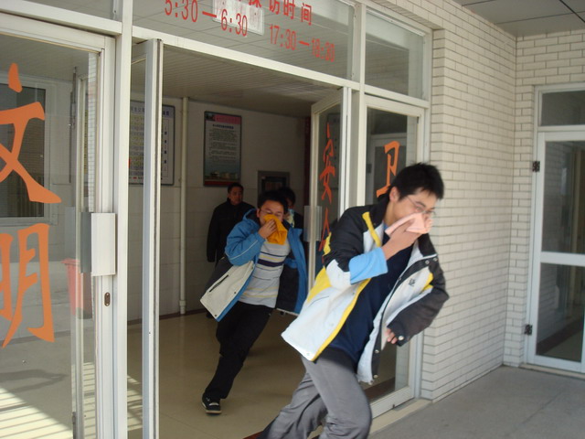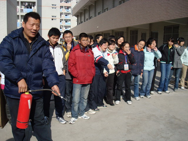 我校学生公寓共有3幢宿舍楼,入住了2000余名寄宿生。为了提高广大寄宿生的安全意识,掌握必要的消防技术和逃生技能,我校于近日组织了高一、高二年级全体寄宿生消防、逃生演习。通过演习,学生感到收获很大,既知道了发生火情时的心理准备,又掌握了消防器材的使用方法,还熟悉了逃生的线路和注意事项。
