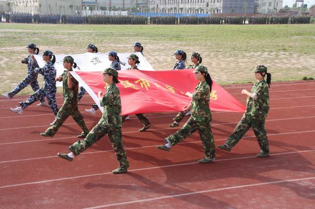 炎炎烈日,咸湿海风,南黄海特有的天气对我校参加军训的高一新生发起了强有力的挑战。 8月22日——28日,短短7天时间,让同学们留下了终身难忘的印象。绿色迷彩服、教官的口令声、大滴的汗水、成群的蚊虫、构成了军训的全部内容。但是“立正”、“稍息”让同学们克服了懒散,艰苦、严格让同学们磨练了意志,晒黑的肌肤,湿透的军装让同学们在自己的心灵里融进了士兵的元素。 随着阅兵式的结束,同学们就将带着军训的收获走上新的征程。