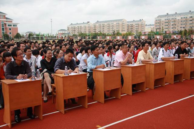 由政教处、团委联合筹办,经过班级学唱、年级选拔、学校决赛等多个环节,我校“庆祝祖国六十周年歌咏比赛”于9月28日正式举行。 在新校区刚刚建成的标准运动场上,全校1300余名师生围坐在一起,侧耳倾听学子发自肺腑的优美歌声。一首首深情的“红歌”,一阵阵热烈的掌声,一个个突起的高潮,让大家时而沉浸在革命的艰难岁月,时而徜徉在建设的火红年代。 歌咏比赛最后决出了一等奖三名(高一10、高二3、高一4),二等奖五名(高二10、高二1、高二8、高一9、高一7)。