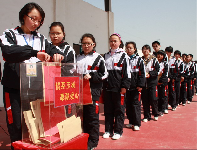 青海玉树地震,震撼着每个人的心灵。地震无情人有情,在灾难面前,每一位中华儿女都团结起来,携手同心,发扬了中华民族“一方有难,八方支持”的传统美德。 我们天星湖中学的广大师生也积极行动起来,近日以捐款、义卖等形式,共募得款项10余万元。 在学校募捐现场,还出现了动人的一幕。一位家住星盛花园的黄老伯在围墙外目睹了我校师生纷纷捐款的感人场面后,当即进入校园捐了口袋里仅有的50元钱,他感到不够,于是又特地赶回家拿了100元捐上。此情此景,让师生们分外感动。