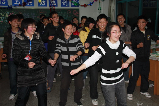 班级联欢 精彩纷呈 教室里,张灯结彩,气氛热烈。同学们有的演唱歌曲,有的表演小品,有的走起舞步,还有的开展游戏。不少班主任与学生同乐,同场表演节目。欢声笑语中,大家满怀激动一起告别即将过去的一年,同时又满怀期待迎来充满挑战、充满希望的一年。