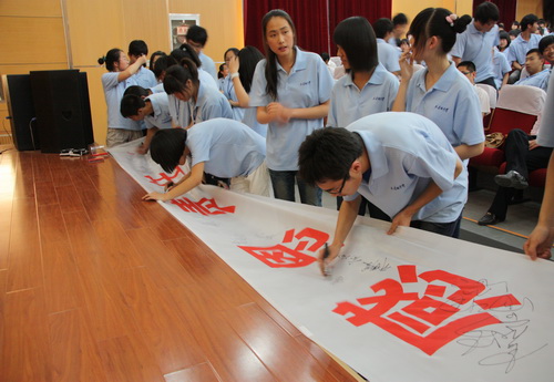 学生会主席黄胜男同学代表全体高二学生向老师、父母表达了认真求学、励志报国的心声。校长助理葛红军向高二年级同学们寄语致辞,他说:“18岁的你们,应该有成人的思索、成人的智慧,更应该有成人的责任。一个人要生存,一个家族要发展,一个民族要强大,需要一种精神原动力,那就是‘责任’,愿你们用青春、用激情,勇敢地肩负起对民族、对社会、对家庭、对个人的责任。”葛校长的讲话赢得了同学们的阵阵掌声。最后,已走入成人行列的同学们纷纷在印有“青春,成长,感恩,责任”的横幅上签上自己的名字。