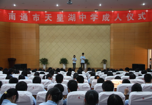 5月16日下午4:30,我校在学校报告厅隆重举行天星湖中学2011年高二年级18岁成人仪式。校长助理葛红军、政教处主任陈卫东、团委书记吴冬杰及高二年级各位班主任参与了此次活动。