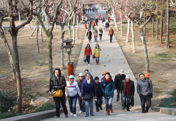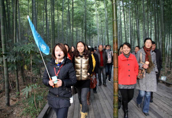3日(周六)上午,在蒙蒙薄雾中,大家首先来到了全国首批五A级风景区--中央电视台影视基地--水浒城。在观赏了“三英战吕布”、“桃园三结义”等影视剧中的精彩片段后,冷空气带来的寒风也并不在意。下午,又驱车来到了南山竹海,在空中缆车上,俯瞰无边无际的竹的海洋,真让人心旷神怡,如入仙境。 4日(周日)上午,大家又成了天目湖的游客。广袤的湖面,薄雾笼罩,水天相接。游轮先把大家送到了龙兴岛,观光游览了1个多小时后,又被游轮接到了山水田园景区。山坡碧绿的茶树、水面粼粼的波光、田园小巧的景致,让人流连忘返。不觉中午已到,美味中自然少不了闻名中外的天目湖鱼头。 视觉的盛宴与物质的美味,让每一位班主任将原有的紧张、烦恼抛到了脑后,愉悦的心情在山水间得以自由放飞。