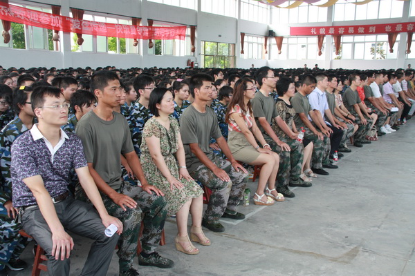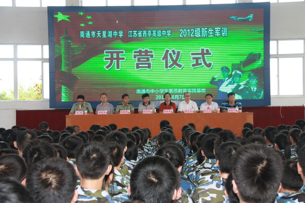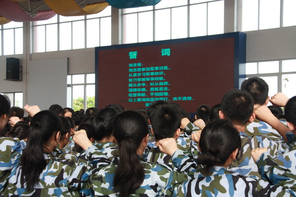高一军训手记之六:开营仪式 接着,军队教官领队邵鑫鸿同志宣布了参加军训的纪律和要求;基地负责人潘卫成主任介绍了基地的概况;天星湖中学校长助理葛红军同志以及西亭中学领导分别作了军训动员,学生代表也上台表决心:流血流汗不流泪,掉皮掉肉不掉队,努力以优异的军训成绩向教官、老师、家长汇报。最后,全体参训学生起立,紧握右拳,进行了庄严的军训宣誓。 两校1500余名新生在今天隆重热烈的气氛中以前所未有的体验,感受到了军训意义的重大和使命的神圣。