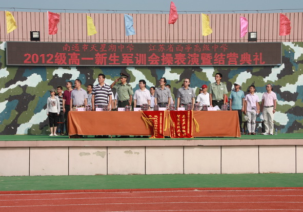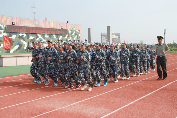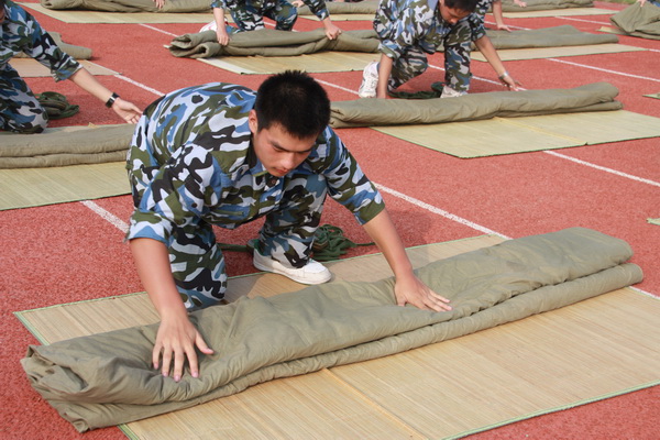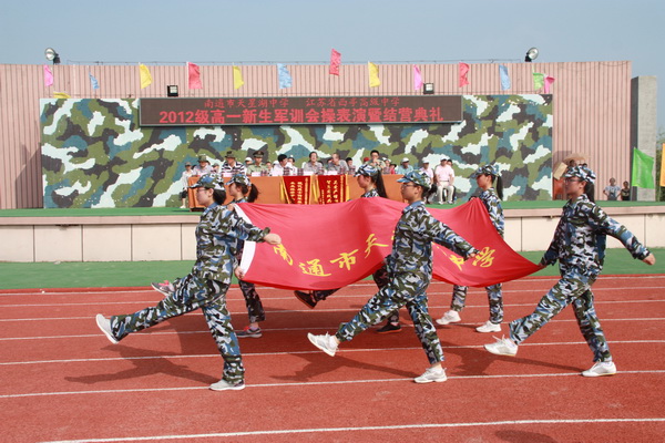 高一军训手记之九:结营仪式 在军训大队队旗迎入结营仪式现场后,首先由学校领导葛红军校长助理检阅了近600名新生组成的受阅方队;接着受阅新生在军训大队队旗、学校校旗的引导下,分成12个中队依次跑步通过主席台;然后观摩了部分同学的军事拳击和打背包表演;最后学校领导和学生代表分别在结营式上讲话,他们除了表达了对教官、军训基地、学校班主任的感谢之外,还希望高一新生把在军训期间养成的好作风、好习惯发扬光大,并自觉贯彻到整个高中学习阶段,努力实现自己的人生理想。结营仪式上,军训基地还对军训中表现优秀的中队和个人给予了通报表彰,发给了奖状。 高一新生6天军训所获得的体验和收获,将可能一辈子受用。