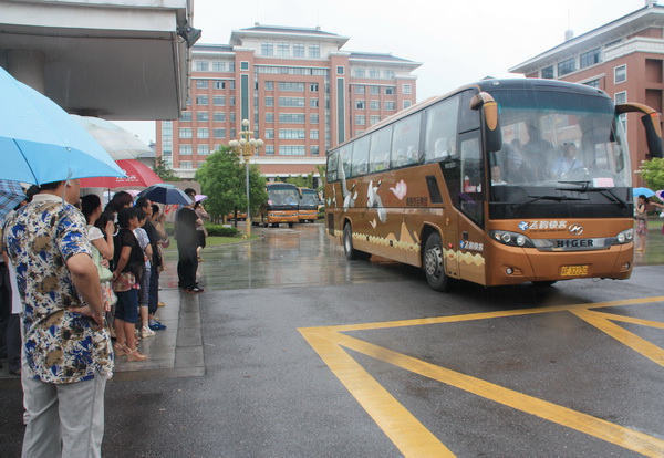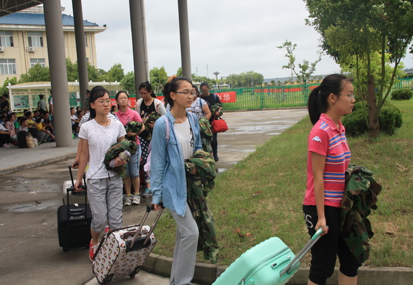 2014年8月1日上午九时许,随着八一建军节防空警报的拉响,满载着600名南通市天星湖中学2014级高一新生的大巴车,在家长们殷切的目光中,从天星湖中学校园内缓缓驶出。 为了贯彻《中华人民共和国国防教育法》,对学生普及和加强国防教育,激发他们的爱国主义精神,同时为了使他们锻炼体魄,磨练意志,锤炼品质,我校在每年高一新生入学之际,都要组织他们进行一周左右的军训。今年的军训将从8月1日开始,8月6日结束。 8月1日上午6:30分,正是高一新生来校军训报到集结的时间。此刻,风越刮越紧,雨越下越大,恶劣的天气似乎故意要考验同学们的承受能力。在班主任的精心组织和家长们的密切配合下,很快完成了新生进班——组织动员——整队上车等一系列程序。9时许,大巴车顺利出发。 在风雨中,经过2个小时近百公里的奔波,13辆大巴车安全抵达本次军训的目的地——位于如东小洋口的南通市青少年国防教育基地。在那里等候的教官根据预案,很快将同学们安排进了各自的宿舍。