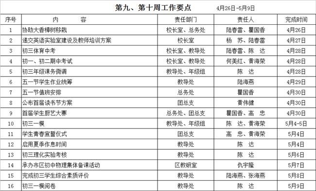 第九、十周工作要点