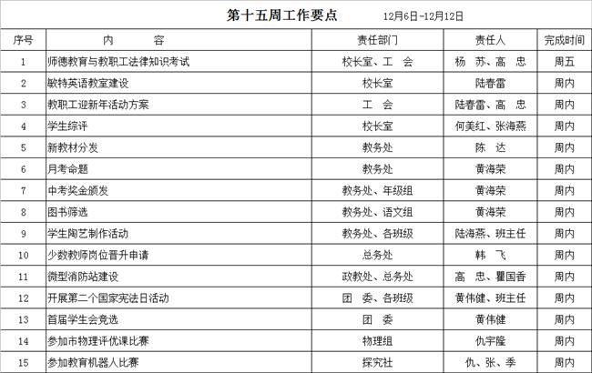 第十五周工作要点