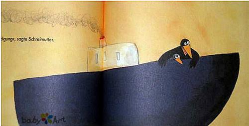 当陪小朋友读完后, 问小朋友说:“你觉得最后小企鹅高兴了吗?”他说:“嗯,可他还很疼呀,因为它是缝上的。”看来孩子什么都明白。孩子内心很柔软。