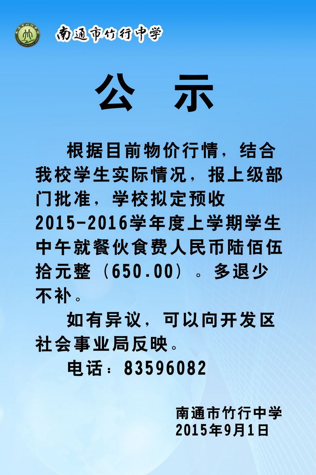 校服收费公示