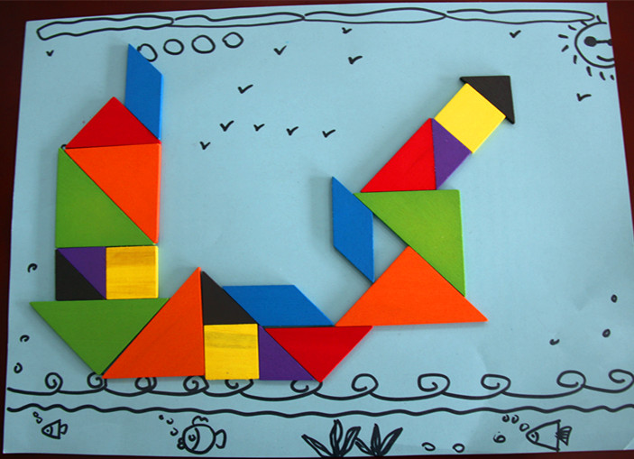 比赛现场命题,要求参赛学生在规定时间内,用七巧板迅速而又富有创意地拼出各种交通工具,并现场向评委老师介绍自己作品的名称和创意。