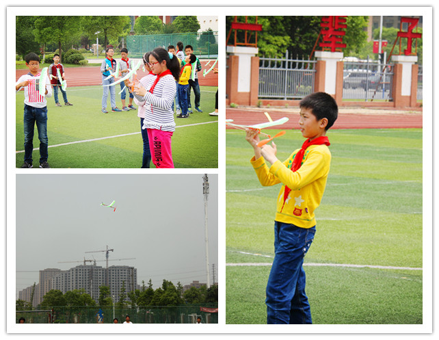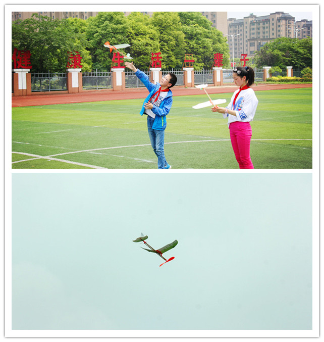 本次活动得到了六年级全体同学的积极相应。比赛前几天,迫不及待的同学们早就认真组装好了飞机,并利用课余时间努力练习。赛场上,同学们使出了浑身解数,各显神通。有的选手注重风向,投放的模型飞机乘风而上;有的选手注重投放的姿态,模型飞机在空中划出一道完美的轨迹;有的选手注重动力,将模型飞机的橡筋增加两道……赛场上,飞机在翱翔,梦想在绽放。