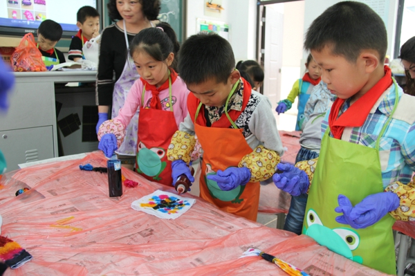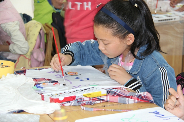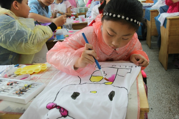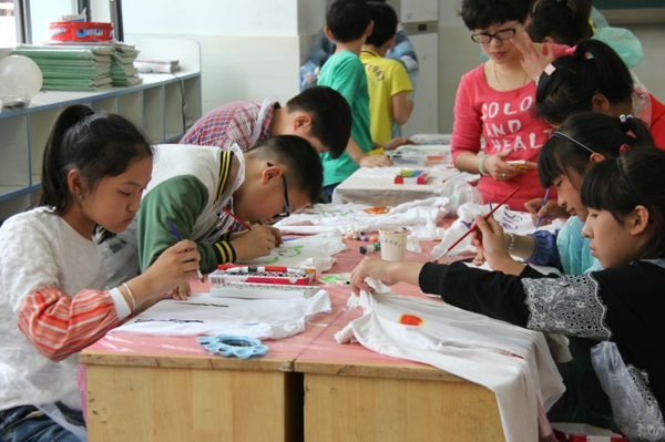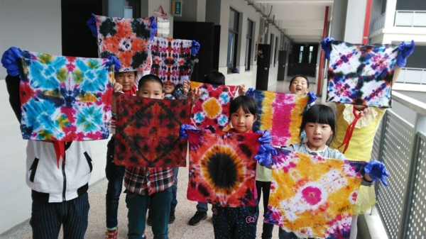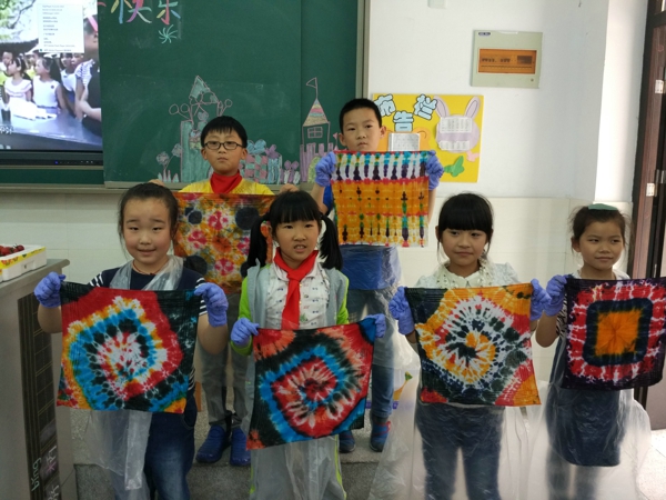 一年级的小朋友在五花八门的游戏中挑战自我,在欢声笑语的快乐中收获成长。二年级与高年级的孩子们则来了一场泼墨艺术,用五颜六色兑上奇思妙想,制成一块块色彩斑斓的扎染手帕,绘成一件件个性十足的创意T恤。