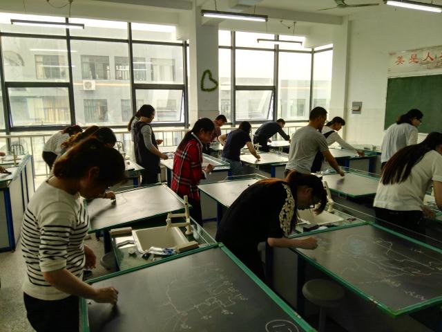 本次比赛共分专业知识测试、粉笔字、板图板画技能、即兴演讲、教学设计与课件制作、模拟课堂教学六大环节。比赛中,二十四位选手精神饱满,踌躇满志,在比赛中各尽其能,相互竞技,充分展示了各自深厚的专业知识和扎实的教学基本功,获得评委组的一致好评。