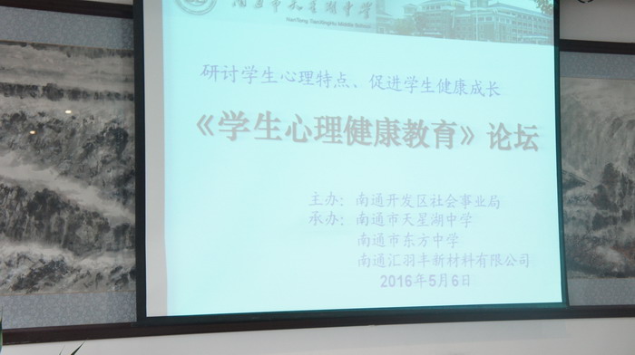 2016年5月6日,我校联合东方中学举办区心理健康教育班主任论坛,两校50余名教师出席了论坛活动,有10多位老师在论坛上作专题发言。天星湖中学徐新民校长、东方中学羌松延校长参加论坛活动。区社会事业局邵平局长到会,并发表了热情洋溢的讲话。
