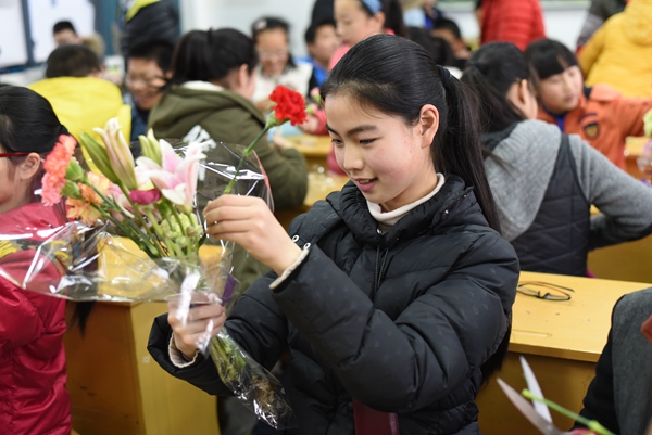 今天,2016年3月8日,是东方中学所有女教师开心快乐、颜值高涨的一天。东方中学初一年级的同学们给全校女教师送上了自己制作的鲜花,祝福老师们三八妇女节快乐!