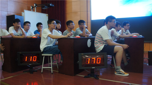 南通市天星湖中学2016年“梦想杯”知识竞赛于6月14日晚在学校姿兰楼报告厅举行,来自高一年级的12个班根据抽签组队的形式参与了本次比赛。比赛分个人必答、小组必答、抢答和风险问答四个环节进行。
