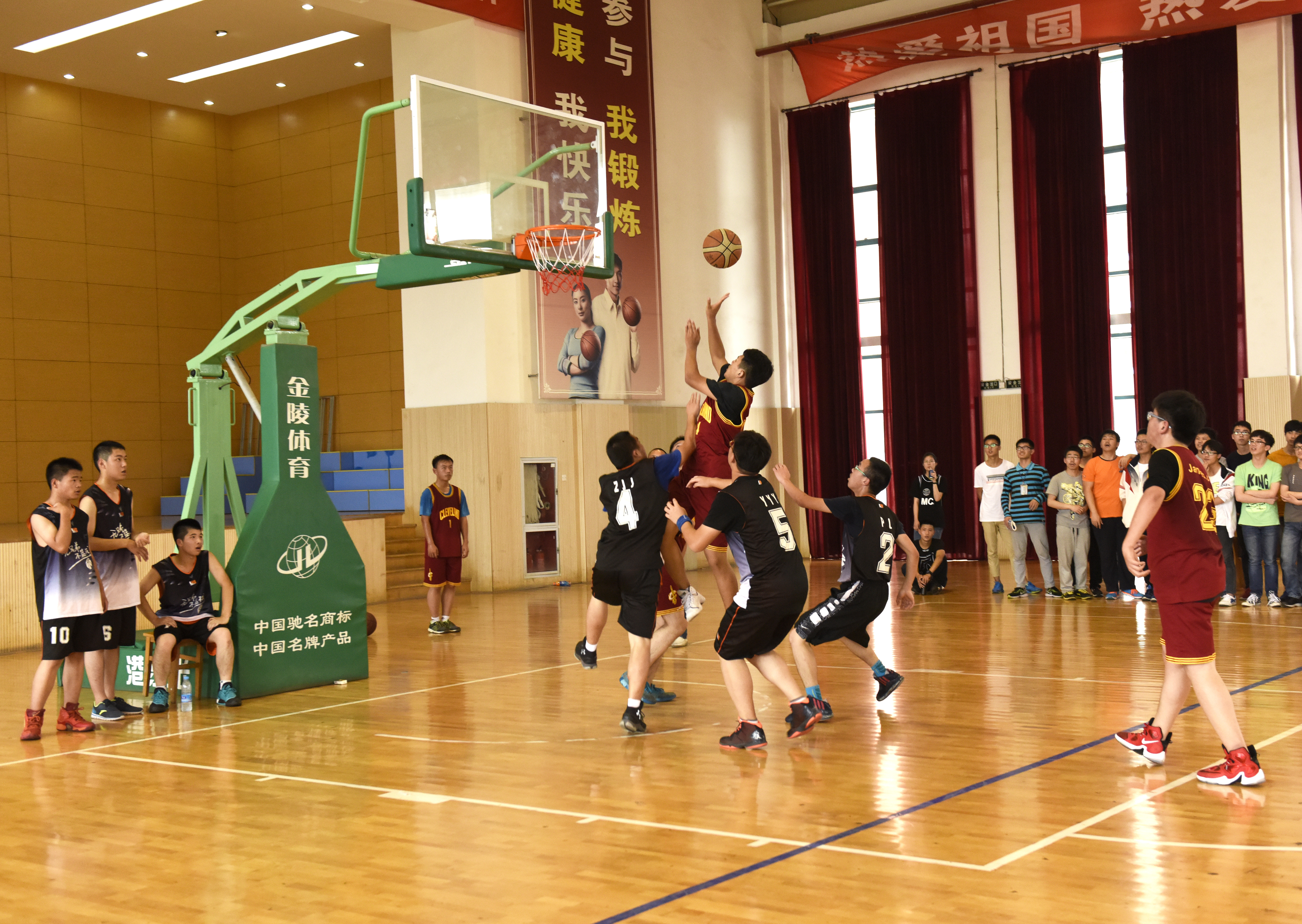 两个年级经过四轮的厮杀,最终高一9、高一11和高二1、高二3班进入了最后冠军的争夺。6月13日下午,决赛在学校篮球馆正式开赛,四支队伍均以昂扬的斗志迎接比赛,球场上队员们以精湛的球技展开角逐,球场下拉拉队员们以震天的呐喊给本班球队助威,场面异常激烈。随着裁判结束哨音的响起,最终高一9以15:9战胜了高一11,而高二1则以压哨两分19:18战胜了高二3。