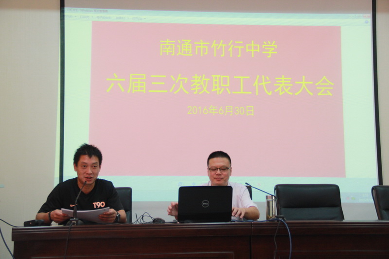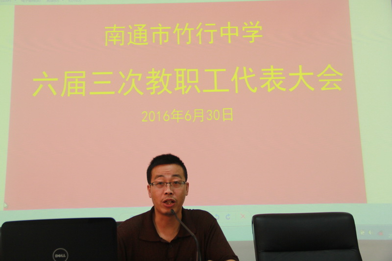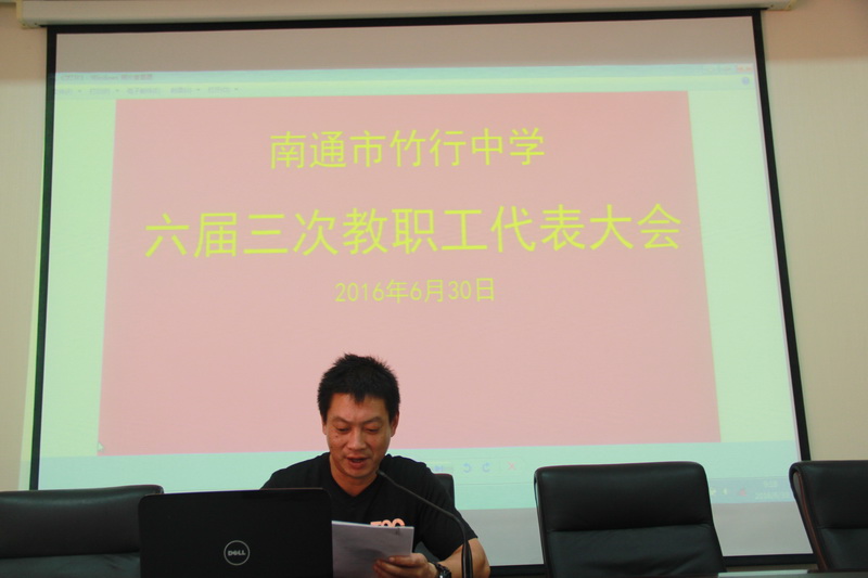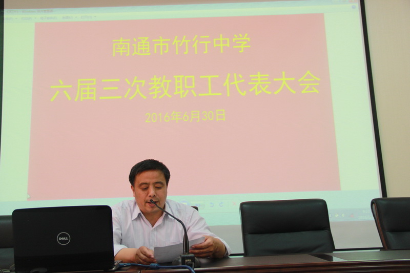6月30日上午,竹行中学在一楼会议室召开六届三次教职工大会。校党委书记、校长杨苏出席了会议,工会主席陆春雷主持了本次大会。