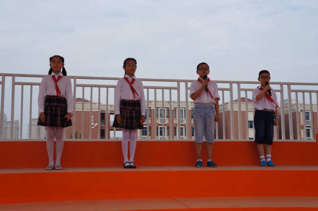 在全体师生慷慨激昂、催人奋进的国歌声中,升旗手自信昂扬地将新学期第一面鲜艳的五星红旗送上“云端”,凝视着冉冉升起的五星红旗,孩子们心潮涌动,露出了稚嫩可爱的笑脸。随后,学校大队委的同学为我们献上了精彩的诗歌朗诵。接着,黄文龙校长做了新学期致辞,向全体学生提出了新的奋斗目标。最后,学校还请来了交警大队的警察对学生们进行安全教育,有效地提高了学生的安全防范意识。最后在主持人的引领下,海小学子庄重地宣誓将在新学期认真学习,天天向上。