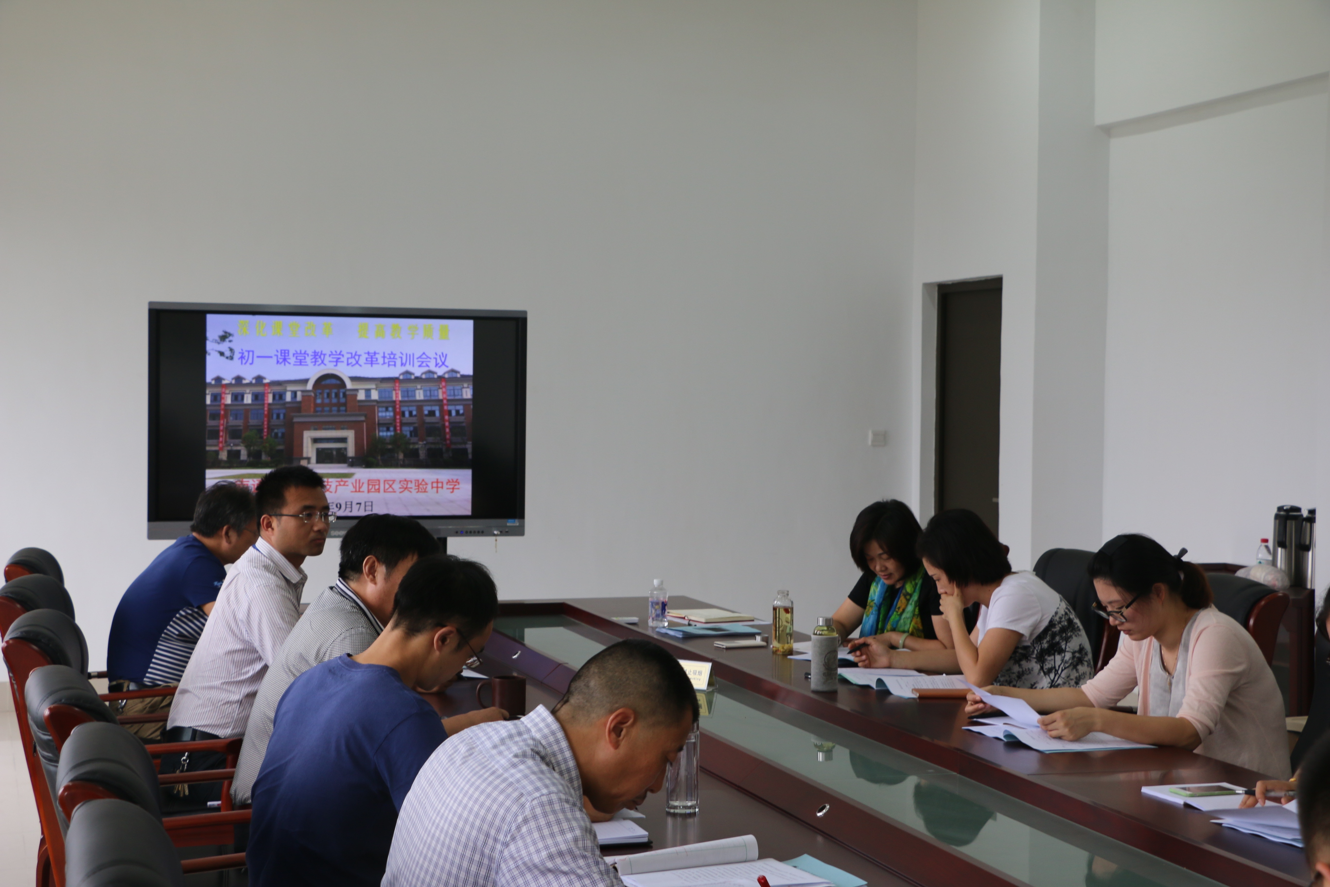 学校教务处杨安庆主任介绍了这届初一新生的整体情况,来自一初中的支教教师陈晓燕老师和新入职的王雯怡老师介绍了初一新生的具体情况和入学以来的表现。会上大家就如何在这届学生中践行课堂教学改革展开了讨论。