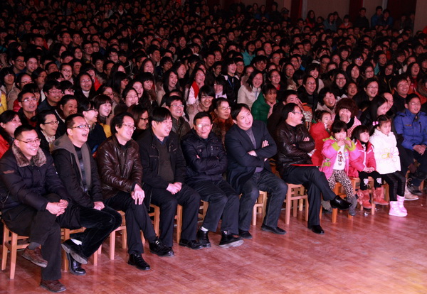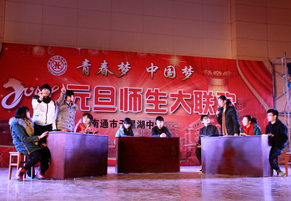 天星湖中学党总支书记、校长徐新民等学校领导与全校2000余名师生欢聚一堂,并且为在2013年中取得突出成绩的先进教育工作者和优秀学生代表颁奖,从而将学生社团成果展示活动推向了高潮。