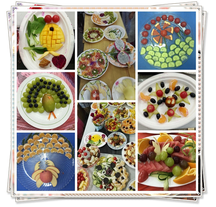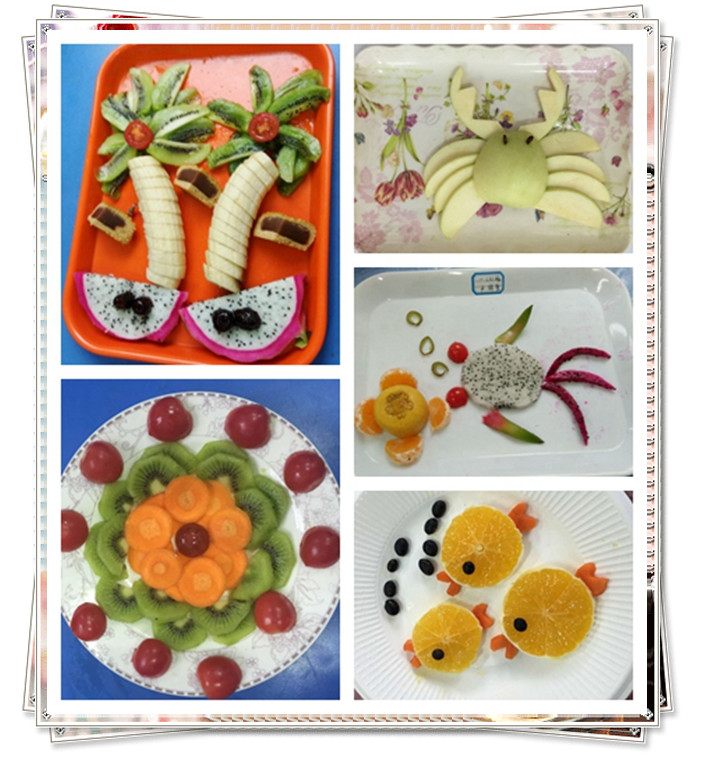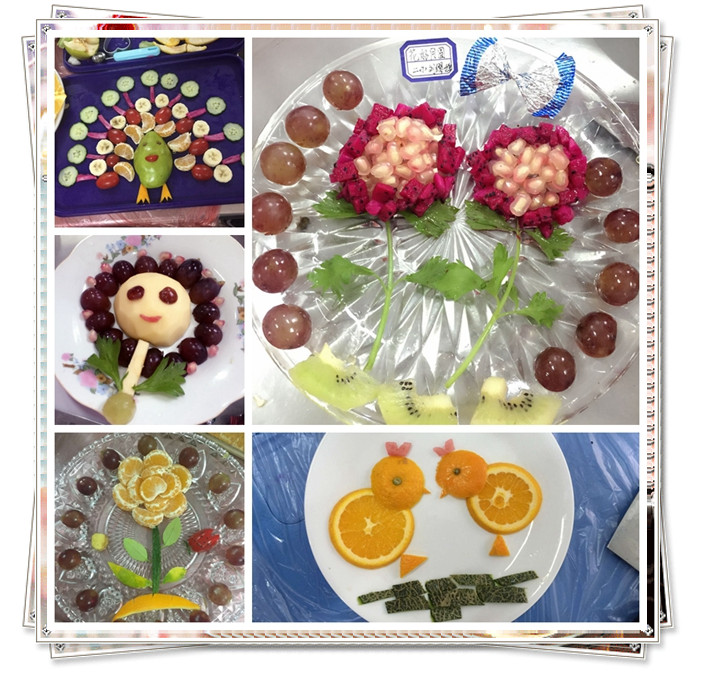 老师、家长、孩子们,大家齐动手共设计,洗、切、削、摆、插、搓、揉……一盘盘缤纷果盘,一个个暖心月饼,哈哈——大朋友比小朋友还嗨;原来我的小手这么巧;这样的作品怎舍得吃了呢……