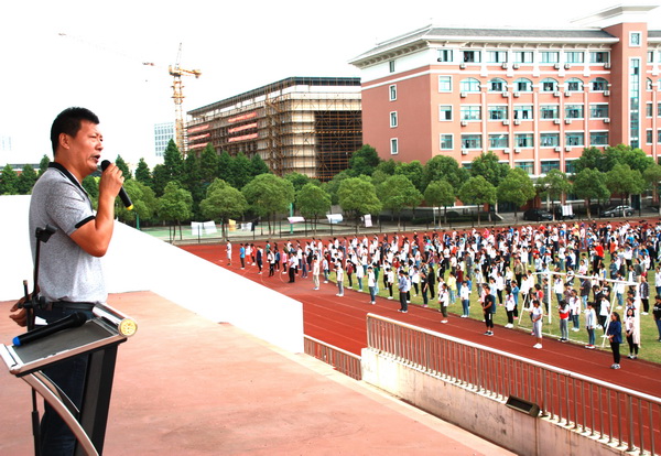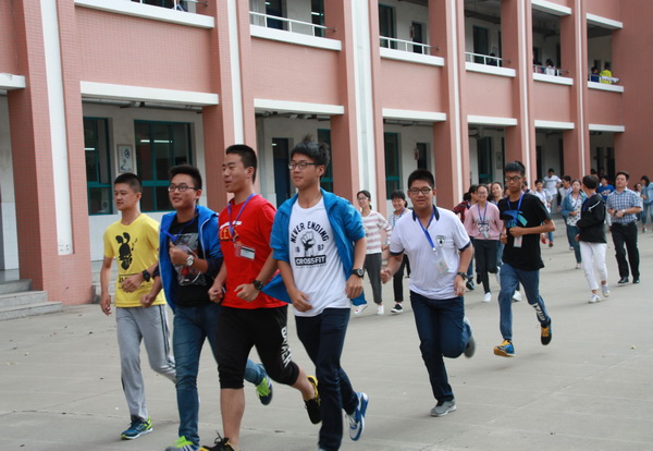 2016年9月18日上午10:08分,一阵急促而凄厉的警报声在天星湖中学校园上空突然响起。紧接着,各班同学在老师的组织指挥下,迅速有序地跑出教室,跑下楼梯,然后按照预定路线,向防灾疏散地——学校运动场奔去。