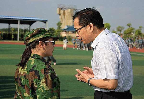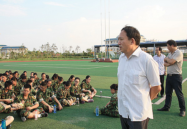 几天来,负责军训的葛红军副校长、驻点的曹俊飞主任,坚守在现场,和班主任保持密切联系,主动去发现问题,积极去解决问题。12位班主任更是时刻与学生在一起:一起晒太阳,一起流大汗。另外哪个学生病了,哪个学生晕倒了,哪个学生闹情绪了,班主任都会在第一时间出现,第一时间处理。