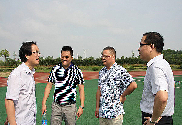 葛红军副校长(左一)在现场与部分班主任交流学生训练情况