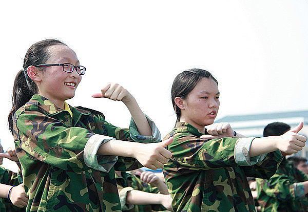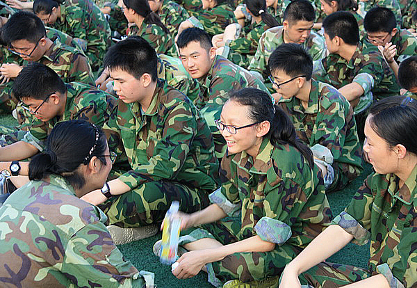为了活跃气氛,教官们别出心裁地组织起同学们唱歌、拉歌、做游戏。歌声里、笑声中,同学们刚才训练时的高度紧张甚至委屈,此刻顿时烟消云散了。
