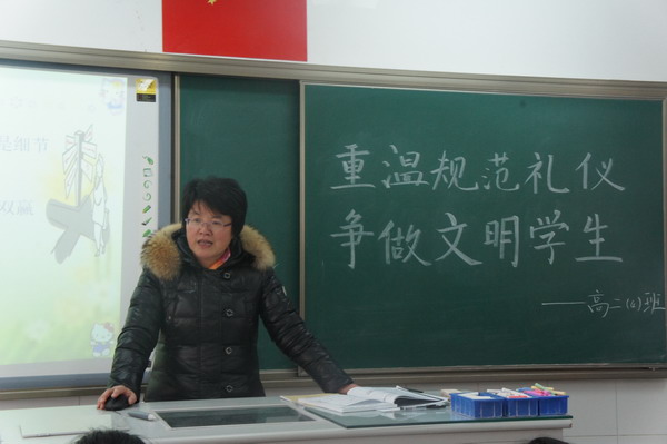 2015年3月1日是新学期开学的第一天,第五节班会课是“开学第一课”,全校各班级以“重温规章,规范言行”为主题,学习《基本礼仪规范》,让文明礼仪伴行学生的每个细节。