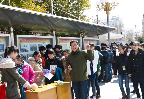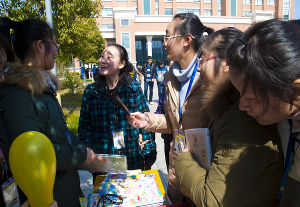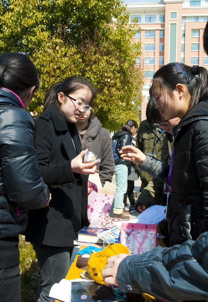 今年爱心义卖中,同学们开动脑筋,开展各式各样的义卖方式。有的班别具一格,组织同学手举宣传海报或广告,穿插在义卖的人流中,为自己班级宣传,吸引更多同学老师前来购买;还有的举办爱心抽奖,以增加“顾客”们的兴趣。