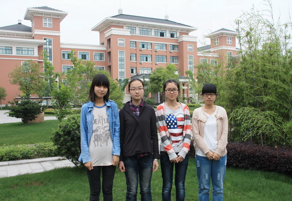 获得一等奖的徐唯帅(右二)、韩 旭(左二)、刘佳思(右一)、袁淑敏(左一)同学合影