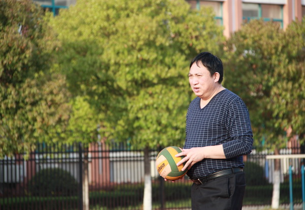 体育爱好者徐新民校长准备发球