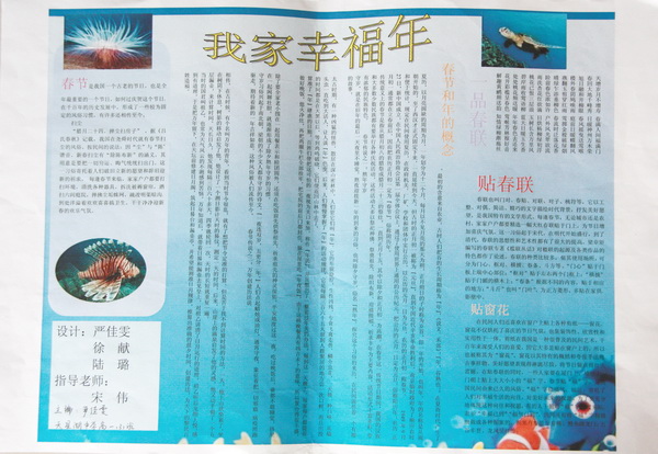 为迎接全省中小学生中开展的“我家幸福年”电子报、手抄报评比大赛,我校特在高一年级开展了相关选拔赛。活动得到高一年级语文教师大力支持。现将校教科室组织的评比结果公布,获一等奖作品将推荐到江苏教育报刊总参加全省评比。