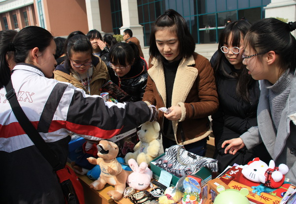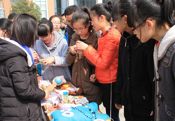 义卖现场,人声鼎沸,爱心飞扬。同学