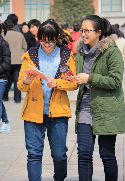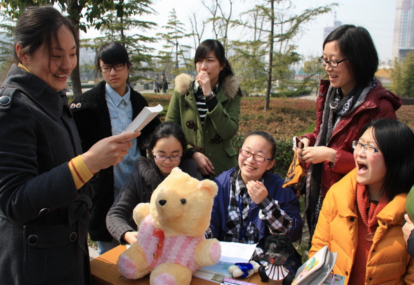为了招揽顾客,同学们有的制作了富有创意的标语,有的穿着醒目的服装,还有的游走在人群中口若悬河地介绍并推销自己摊位的物品。