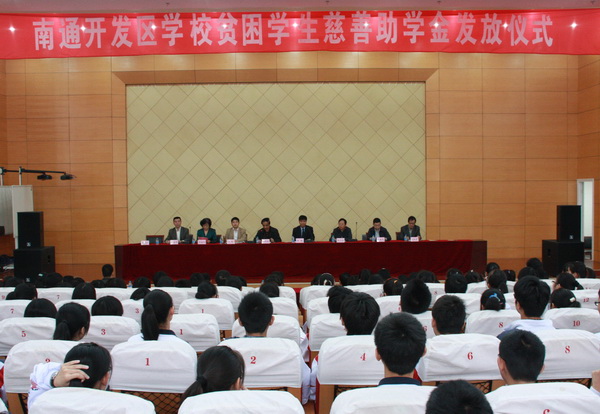落户南通开发区的一些企业本着回馈社会、关爱学子的精神,募集慈善助学金20余万元,用以帮助在开发区境内的南通航院、南通工贸技校、天星湖中学等五所学校的贫困学生。我校共有30名学生每人获得了500元的资助。