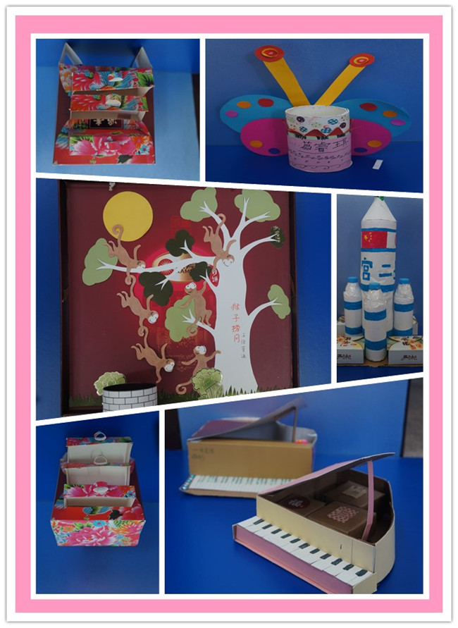 最后,各年级分别开展了形式多样的活动。一二年级是“饼盒造型秀”,家长与学生齐动手,把家里闲置的月饼盒“变废为宝”。三四年级是“创意贴贴贴”,学生发挥奇思妙想,完成一幅中秋创意拼贴画。五六年级则是开展了“妙笔寄情思”的中秋征文活动。