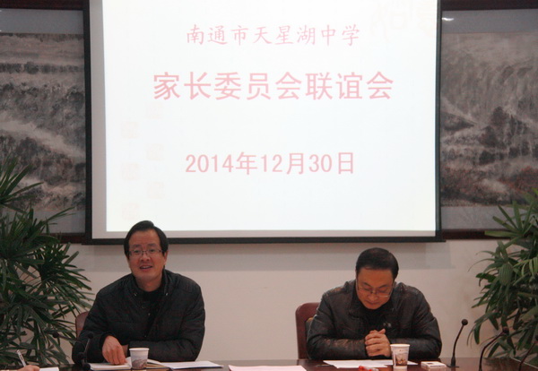 12月30日下午,屋外寒气袭人,屋内暖意融融。此刻,南通市天星湖中学家长委员会联谊会正在学校滋兰楼六楼大会议室热烈举行。