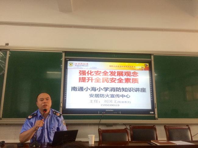 为进一步增强全校教职工安全生产意识,防范事故发生,9月19日下午,小海小学邀请安居防火宣传中心刘国文教员为大家作了题为“强化安全发展观念,提升全民安全素质”的消防安全知识讲座。