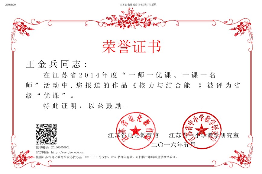 王金兵老师在江苏省“一师一优课”比赛荣获省优秀课奖