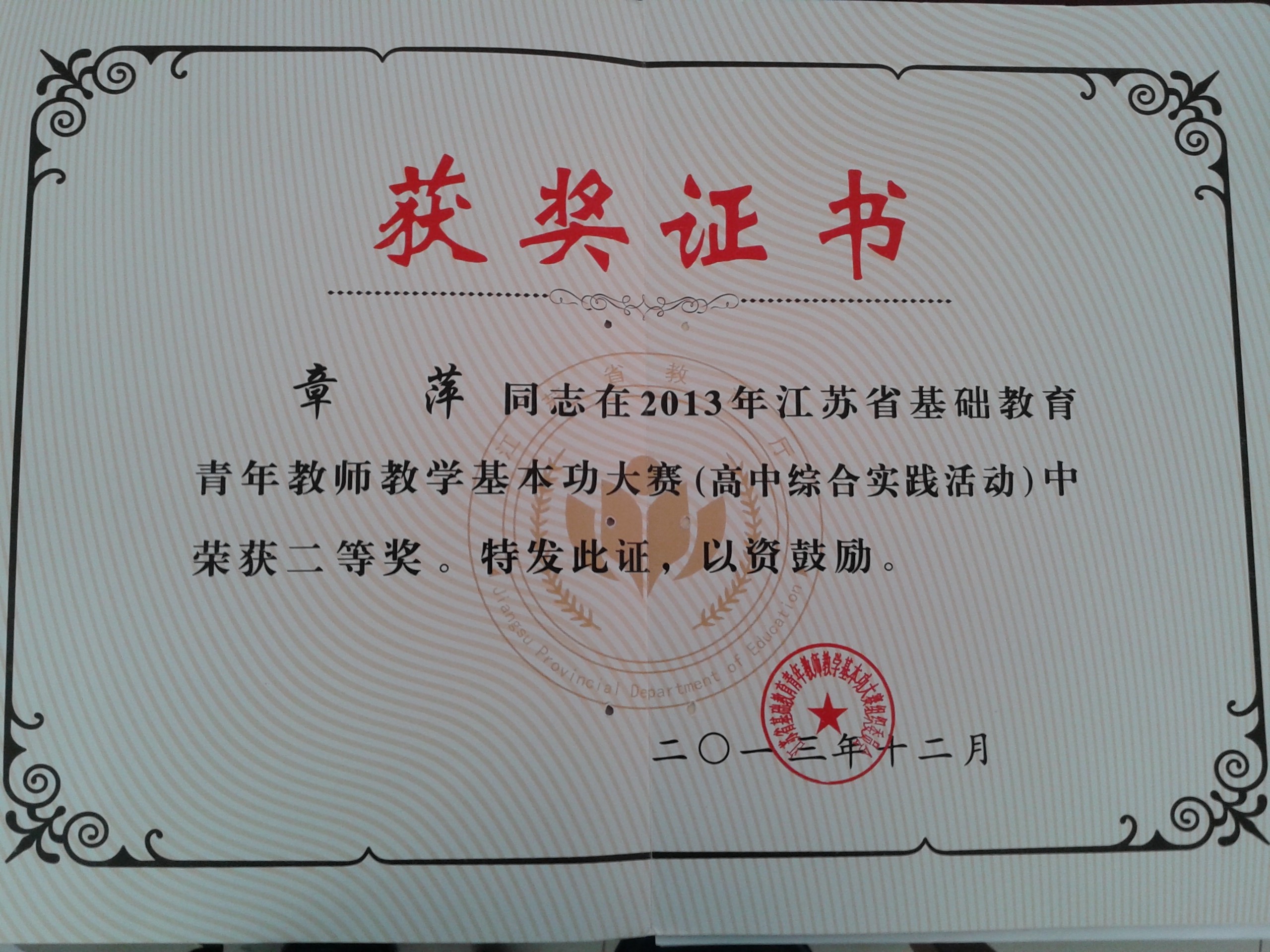 章萍教师在教师基本功竞赛中荣获江苏省二等奖