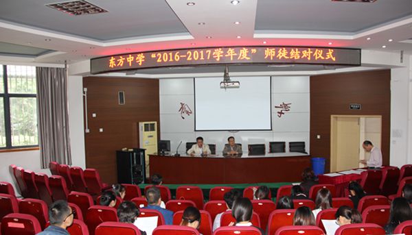 为了充分发挥东方中学骨干教师的引领、示范、辐射作用,促进青年教师、新进教师的专业成长,进一步打造学校优质教师团队,全面提高教育教学质量,10月12日中午12:30,学校在阶梯教室隆重举行了“学科教师师徒结对”和“班主任师徒结对”仪式, 26位导师与28名徒弟结对成功。